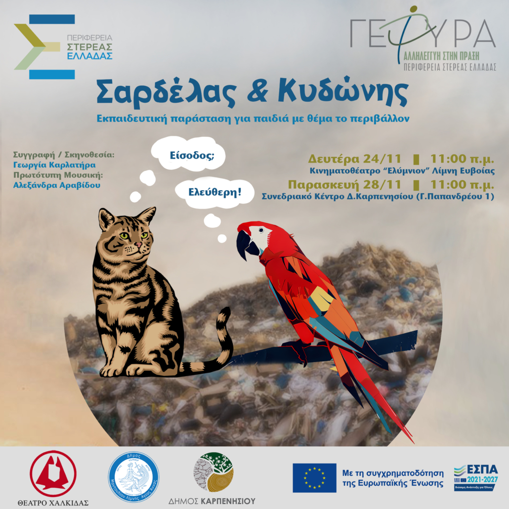 ΔΕΛΤΙΟ ΤΥΠΟΥ // ΠΕΡΙΦΕΡΕΙΑ ΣΤΕΡΕΑΣ ΕΛΛΑΔΑΣ: Εκπαιδευτική Παράσταση για παιδιά: «Σαρδέλας & Κυδώνης»